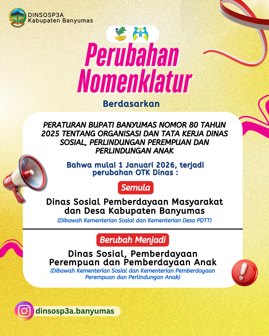 Karang Taruna Kabupaten Banyumas menyelenggarakan event tahunan yaitu Karang Taruna Awards, Rapat Koordinasi, dan Pra Temu Karya Karang Taruna 2026 yang diselenggarakan di Aula Dinsospermasdes pada Senin (29/12). Acara tersebut dibuka secara langsung oleh Kepala Dinsospermasdes, Hirawan Danan Putra.