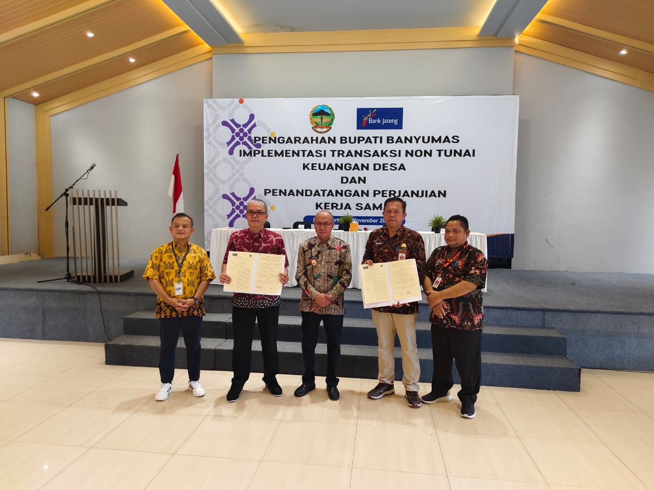 Bupati Sadewo bersama Kepala Dinsospermasdes Mendorong Percepatan Non-Tunai Desa melalui CMS Bank Jateng.
